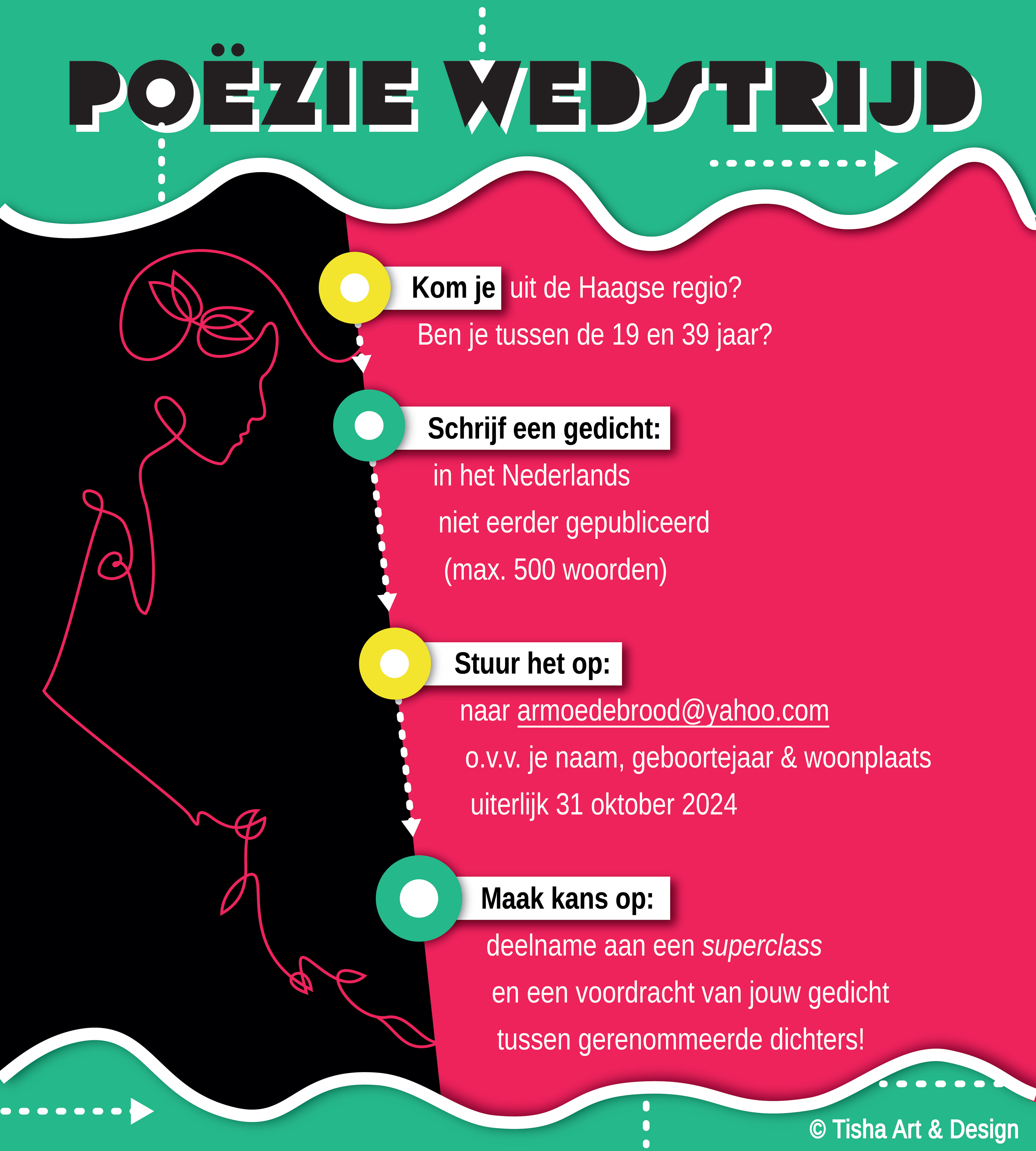 Liefhebbers en woordkunstenaars troffen elkaar tijdens Armoedebrood, een bruisende viering van de letteren. Voor deze avond vol poëzie, met gerenommeerde dichters en met aanstormend (Haags) talent over het onderwerp 'armoede', heb ik promotiemateriaal gemaakt. Flyers en banners die aandacht trekken en informatie in één oogopslag helder weergeven.